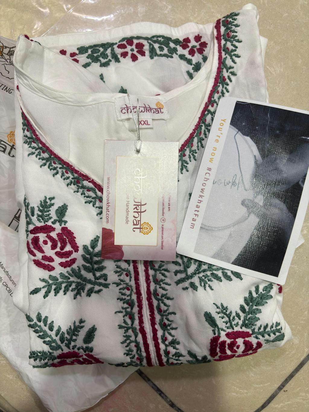 - Detailed hand embroidered Chikankari (Ulti Bakhiya) work all over