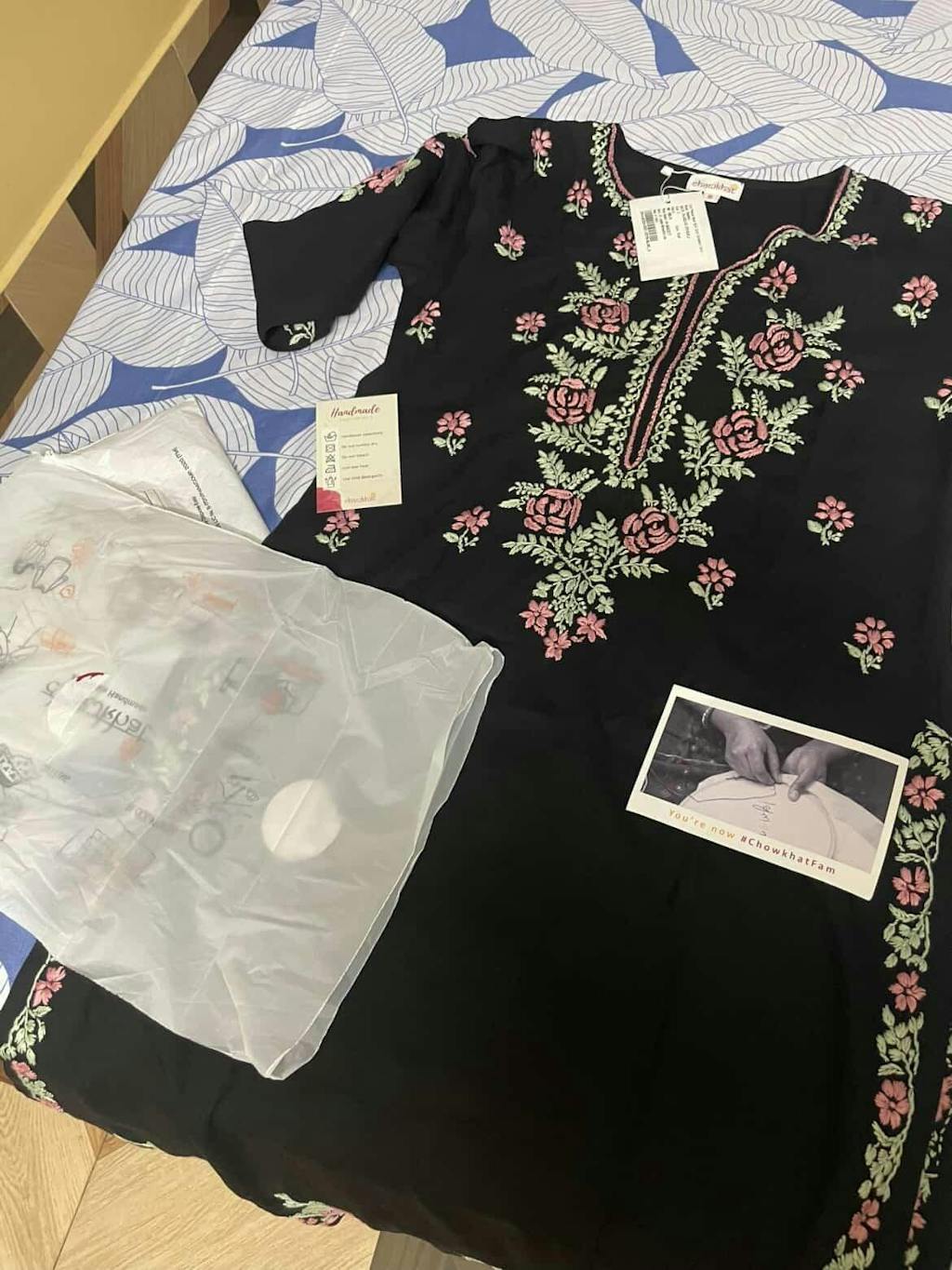- Detailed hand embroidered Chikankari (Ulti Bakhiya) work all over